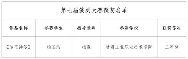 7月2日,甘肃省教育厅公示了“典耀中华,赓续文脉”第七届中华经典诵写讲大赛省级初赛拟获奖名单,我校在“诵读大赛”“讲解大赛”“篆刻大赛”中共斩获三等奖2项,优秀奖4项。