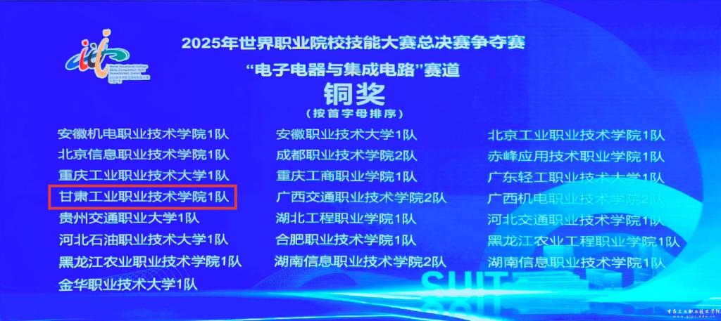 8月27日至31日,2025年世界职业院校技能大赛总决赛争夺赛电子电器与集成电路赛道在深圳信息职业技术大学成功举办。我校参赛团队凭借扎实的专业功底、出色的创新能力和紧密的团队配合,从全国163支强劲队伍中奋勇突围,最终荣获该赛道铜奖!这是继此前国赛摘铜后,我校再次在该项权威赛事中斩获荣誉,充分彰显学校师生持续进步的卓越实力与昂扬风貌!