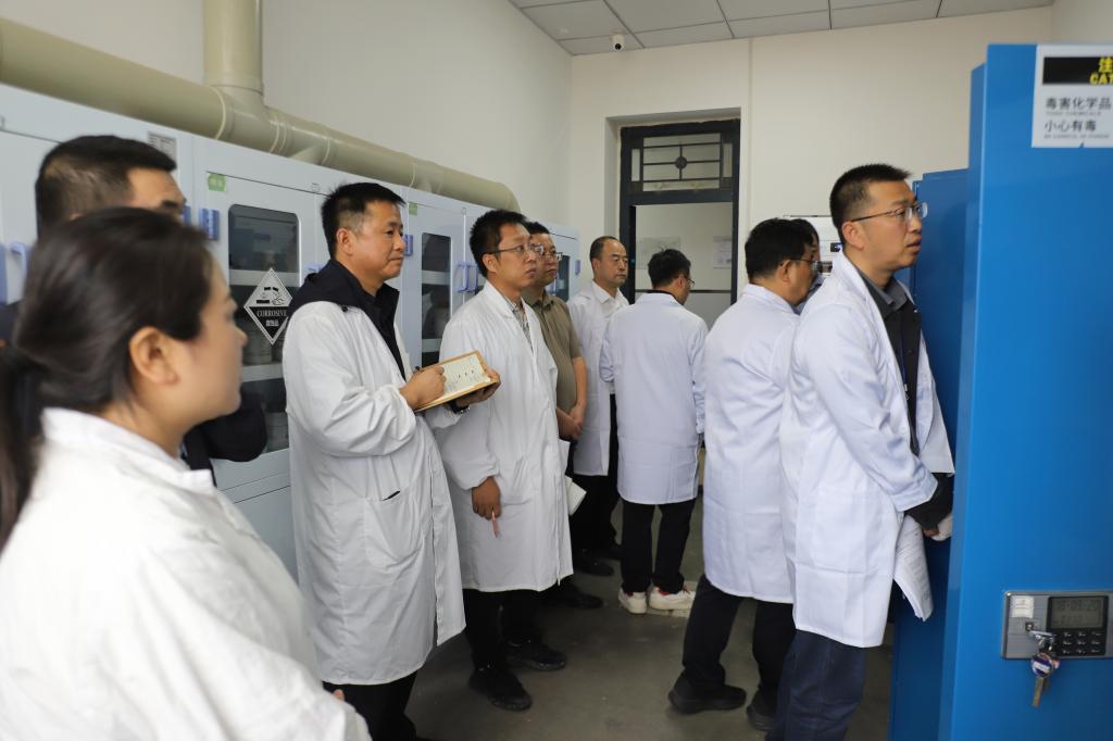 听取汇报后,章伟组长介绍了本次调研的背景、目标、具体流程和重点内容。随后,调研组一行实地考察了我校部分实验室,对危化品存储管理、安全设施配置、人员培训档案、安全管理制度与执行记录等进行了细致检查,并与相关管理人员进行现场交流。