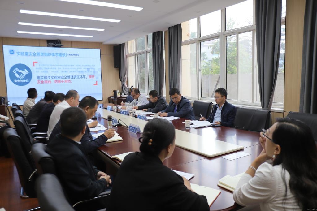 周晓明代表学校对调研组的到来表示热烈欢迎,并介绍了学校办学概况和实验室建设基本情况。教务处负责人就学校实验室安全管理体制机制、责任落实、日常运行及教育宣传等方面作了详细汇报。