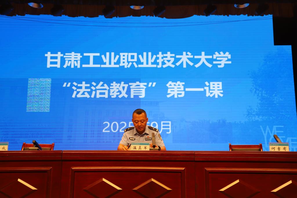 金秋送爽,法治启新。为深入贯彻落实全面依法治国基本方略,扎实推进平安校园、法治校园建设,引导新生系好大学生涯“第一粒法治扣子”,9月6日,我校特邀法治副校长、市公安局温真军警官为2025级全体新生带来一场题为“知法明礼守底线 青春扬帆不偏航”的法治教育专题讲座。这场内涵丰富、意义深远的“开学法治第一课”,彰显了学校立德树人、法育未来的坚定决心,为新生开启大学生活注入了坚实的法治力量。