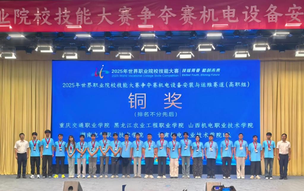 近日,2025年世界职业院校技能大赛争夺赛机电设备安装与运维赛道(高职组)比赛落下帷幕。我校电气工程学院学生杨宁、韩博龙、严子豪、牛亮亮凭借扎实的专业技能、精准的操作能力和出色的团队配合,勇夺铜奖。这是我校学子在国际技能舞台上取得的又一佳绩。