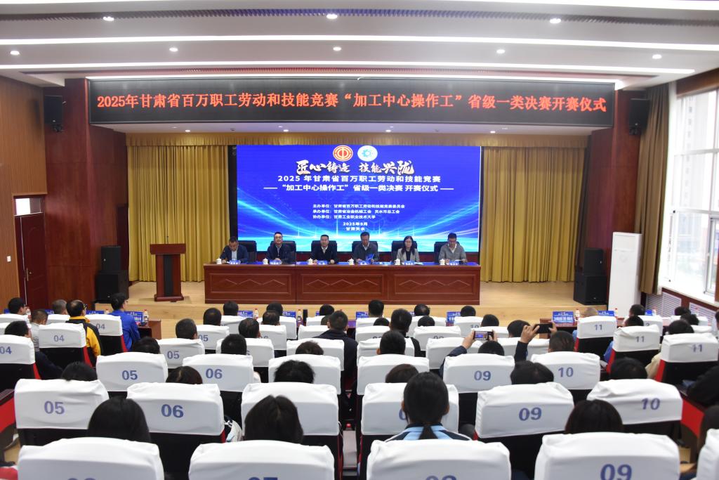9月24日,2025年甘肃省百万职工劳动和技能竞赛“加工中心操作工”省级一类决赛开赛仪式在甘肃工业职业技术大学举行。甘肃省总工会党组成员、副主席白鑫,天水市总工会党组书记、常务副主席张炜,学校党委书记坚葆林、副校长张庆华,甘肃省总工会技协办三级主任科员陈文文出席。开赛仪式由天水市总工会党组成员、经审会主任赵建业主持。