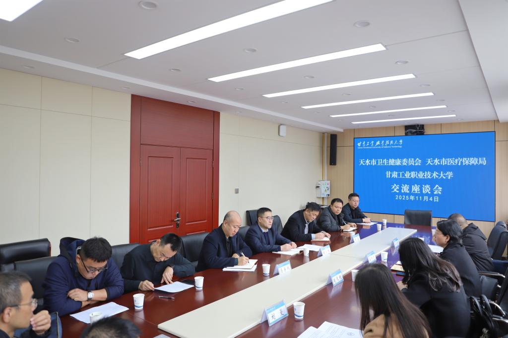 11月4日,天水市医疗保障局局长霍珍珍带队,与市卫生健康委员会相关负责人一行莅临我校,专题指导校医室规范化建设与大学生医保参保服务工作。副校长胡森林主持座谈会,后勤管理处、学生工作处等相关部门负责人参加。
