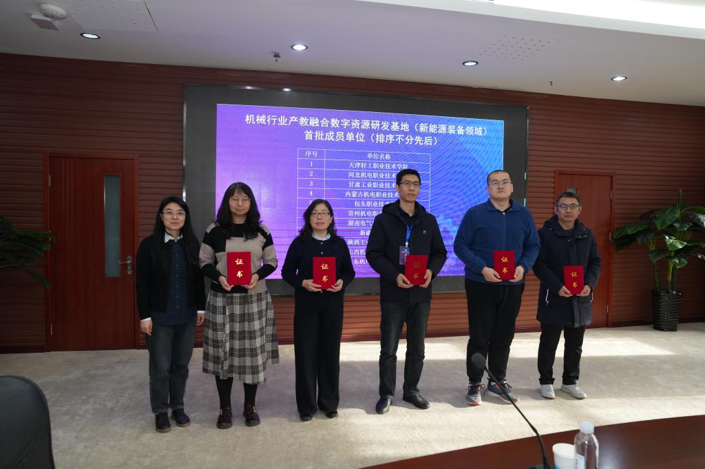 12月8日,机械行业产教融合数字资源研发基地(新能源装备领域)成立大会暨机械行业职业院校课程及教材高质量发展研讨会在天津举行。本次会议由机械工业教育发展中心主办、天津轻工职业技术学院承办,我校作为首批成员单位受邀参会,副校长张德龙出席,电气工程学院相关负责人参加。