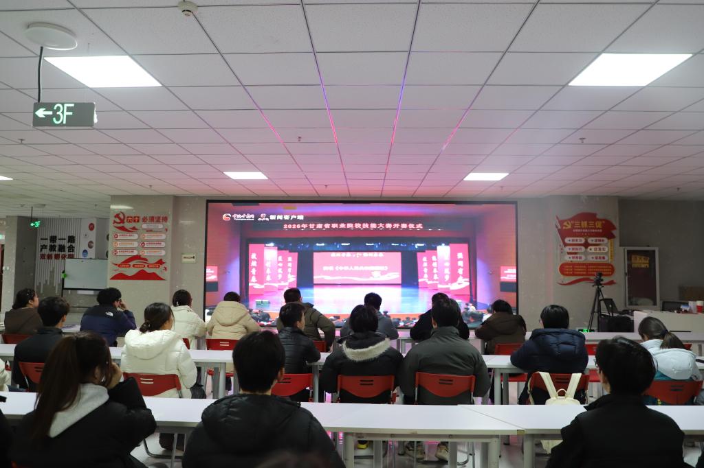 12月12日上午,2026年甘肃省职业院校技能大赛开赛仪式在兰州新区举行,我校在创新创业学院路演大厅设立分会场。副校长周晓明出席,教务处相关负责同志、师生代表共同参加。