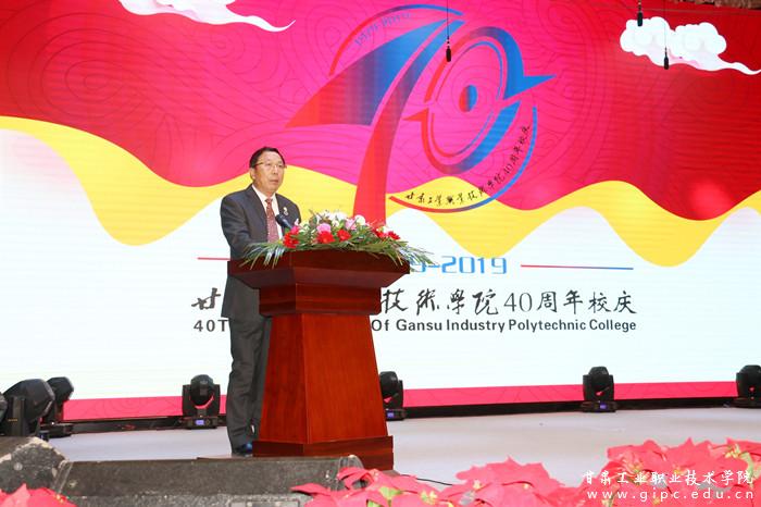 曹爱明校长致辞,对各位参会领导、嘉宾和校友的到来表示热烈的欢迎,对给予学校的关注关心和支持帮助的各界人士表示诚挚的感谢。曹爱明校长讲到,学校从1979年天水地质学校创校到甘肃工业职业技术学院先后五次改名,沧桑巨变40年,一路劈荆斩刺、开拓创新,秉承“因核而生、依核而长、伴核而兴”的传统,坚持“立德树人”初心,工作服、地质包、罗盘、地质锤,六间简陋的教室,翻荒山穿草地,扎根陇原,依托行业优势,不断提高教学水平、积累教育资源,为国防科技工业和地方经济社会发展作出了巨大的贡献,这沉甸甸的硕果是工院每位默默耕耘老师的辛勤奋斗换来的。曹爱明校长说:“今天,我们齐聚一堂共庆学校40岁生日,共划学校未来发展之路,共享学校改革发展成果,让我们凝心聚力,不忘初心,继往开来,用持续不断的奋斗和拼搏为过往点睛,给未来画像,在实现中华民族伟大复兴的征程中带着“严细、忠毅”和勇气上路去追逐更加美好的明天!再次成就学校美好的传奇。”