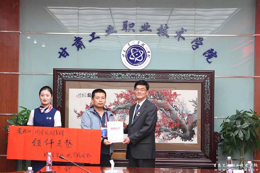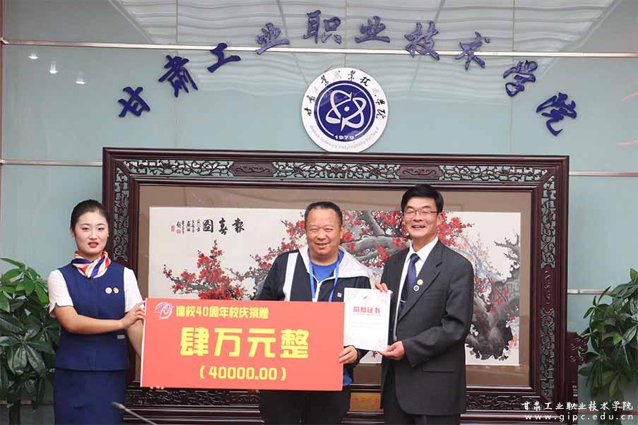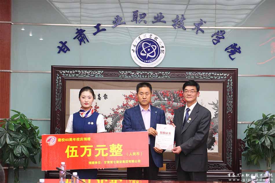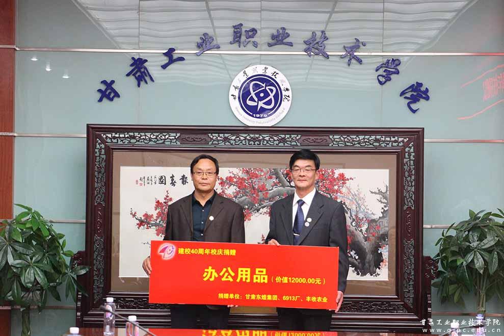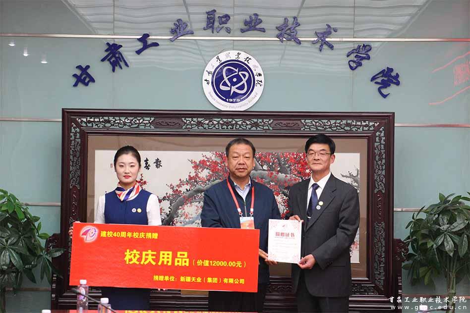 来自内蒙古维邦日新电子科技有限公司、江苏宇邦工业自动化系统有限公司、甘肃第七建设集团有限公司、甘肃日新电子科技有限公司、北京凯蓝盛世品牌管理有限公司、甘肃东煜集团、天水六九一三电子科技有限公司、甘肃丰收农业科技有限公司、新疆天业(集团)有限公司、甘肃秦洁环境科技有限公司、核工业地质局二八一大队、核工业地质局二八二大队、核工业地质局二八三大队、四川省核工业地质局、成都片区校友会、江西省核工业地质局二六三大队校友会、中国移动天水分公司、中国联通天水分公司、天津劲松护养院、北京校友会、广东校友会等多家企业和优秀校友严智敏向学校捐赠。