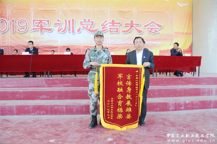 2019级全体同学接受了学校领导和教官的检阅。参训新生进行了分列式和汇报表演,各方队整齐划一、口号响亮、军姿严整,以崭新的精神面貌向学校领导、老师和教官汇报军训的丰硕成果。杨声书记代表学校向支持和指导我校军训工作的部队赠送了锦旗。部队首长和学校领导为优秀学员颁发了荣誉证书。