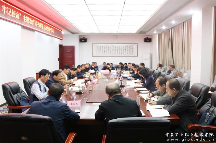 9月27日上午,甘肃工业职业技术学院“不忘初心、牢记使命”主题教育读书班第五次集中学习在学校图书馆4楼会议室召开。校党委领导班子成员,各党总支、支部书记,各二级学院院长及副处级干部参加。校党委副书记郭建忠主持学习。