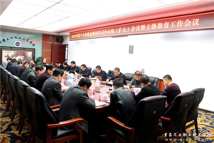 11月11日上午,学校在图书馆4楼会议室召开2019年第十八次党委理论学习中心组扩大会议暨主题教育工作会议。校党委领导班子成员,各党总支、支部书记,副处级干部参加。会议由校党委书记杨声同志主持。