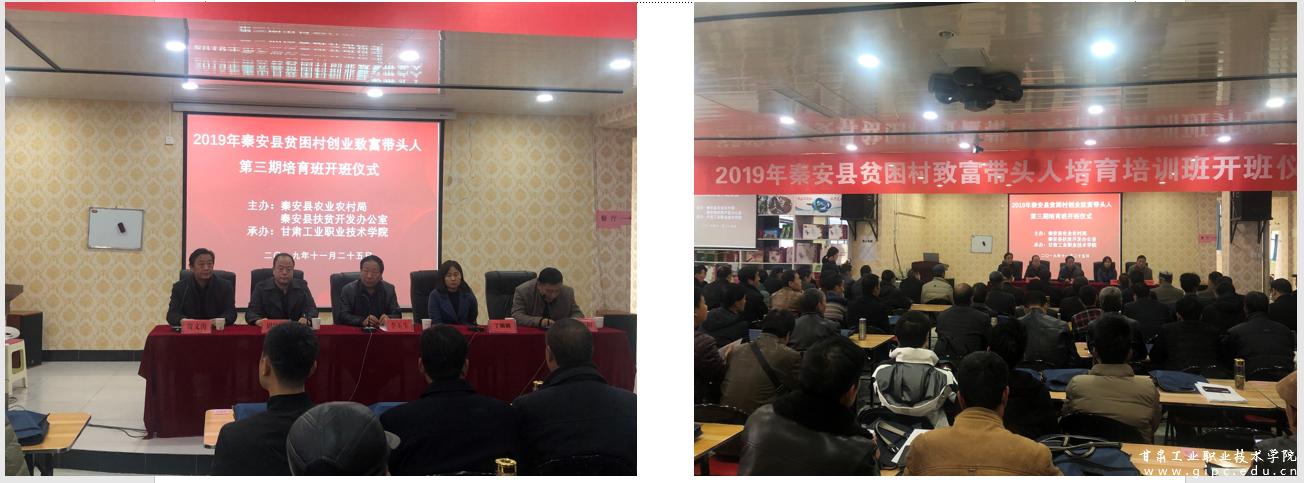 11月26日,由秦安县农村农业局、秦安县扶贫开发办公室主办,我校与秦安县九洲电子商务有限公司联合承办的第三期秦安县贫困村创业致富带头人培育班在我校电子商务技术服务基地——秦安县九洲电子商务有限公司开班。我校副校长李玉生,招生处处长贾文海,经管学院院长周晓明、副院长,秦安县农村农业局副局长杨春和,秦安县扶贫开发办公室副主任丁娟娟,秦安县九洲电子商务有限公司代表以及128名秦安县贫困村致富带头人参加了开班仪式。