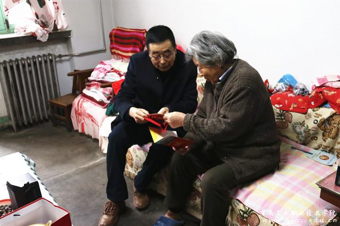 春节将至,岁寒情深。1月14日,校党委组织开展春节慰问活动,校党委书记杨声、校长曹爱明、副书记郭建忠等学校领导带队走访慰问离退休老党员老干部和家庭经济困难职工,为他们送去关怀和温暖,并提前送上新春佳节的问候与美好祝福。