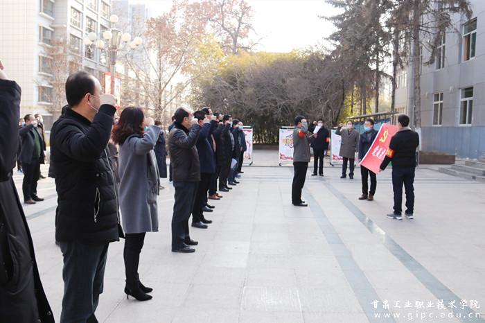 2月10日上午10时,在行政办公楼前举行了党员先锋队授旗、宣誓仪式。校党委书记杨声向先锋队授队旗,全体先锋队队员面对党旗庄重宣誓,立誓言、表决心,坚决打赢疫情防控阻击战。