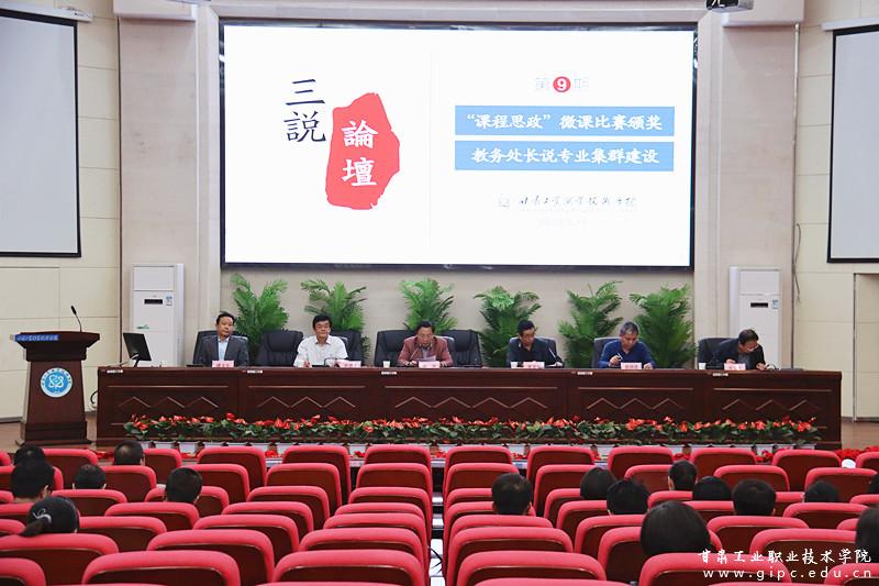 会议对参加首届“课程思政”微课作品获奖个人、教学团队和教学部门予以了表彰奖励,并对获得特等奖和一等奖的8件作品进行了展播。教务处处长何瑛从专业群的定义、内涵、特征及类型进行了交流探讨,并结合学校实际就专业群构建和建设内容作了第九期“三说论坛”汇报。