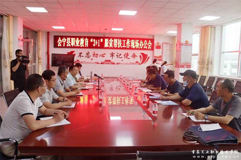 张斌对杨声一行的到来表示热烈欢迎,并简要介绍了会宁职业教育发展的基本情况。会宁县职业中等专业学校围绕办学条件、专业建设及师资队伍等方面作了简要汇报,并就职教中心面临的问题和存在的困难,结合学校实际需求对帮扶工作提出了具体建议。
