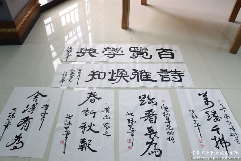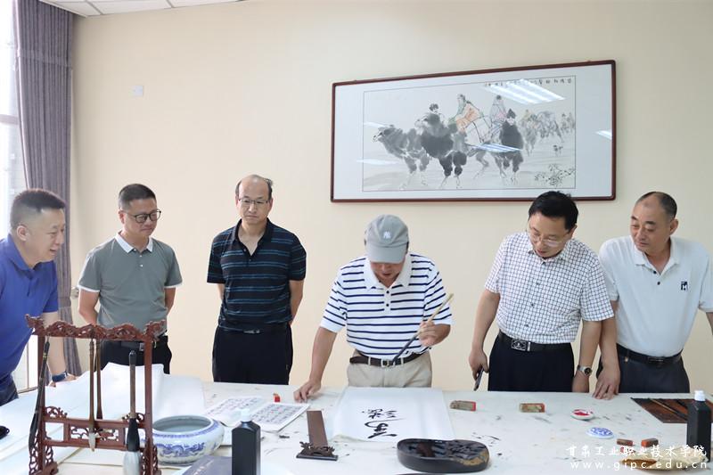 杜世禄参观校园后,高度评价了我校厚重的历史文化、鲜明的办学特色和良好的精神风貌,充分肯定了甘工院人自建校至今秉承核工业精神,艰苦奋斗、爱岗敬业、无私奉献,为我国国防科技工业和地方经济社会发展做出了积极贡献,充分彰显了广大师生强烈的社会责任感和爱国热情。杜世禄建议学校要加大宣传力度,通过各种平台、多种方式宣传学校的办学精神和育人成果,不断提高学校的知名度、美誉度,并用珍贵的墨宝寄予了学校发展远景。即兴创作的作品,全部将由学校装裱收藏。