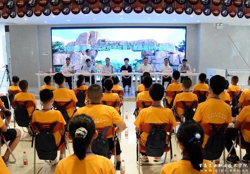 8月3日,由天水市科学技术协会主办,甘肃工业职业技术学院承办的2020年“关中——天水经济区”青少年地质科学夏令营活动在我校开营,天水市人民政府副市长汪小娟、天水市科学技术协会主席李凤奇、甘肃工业职业技术学院校长曹爱明、天水市科学技术协会副主席刘暾伟等领导出席,甘肃工业职业技术学院相关职能部门负责人、辅导员及全体夏令营成员参加开营仪式。
