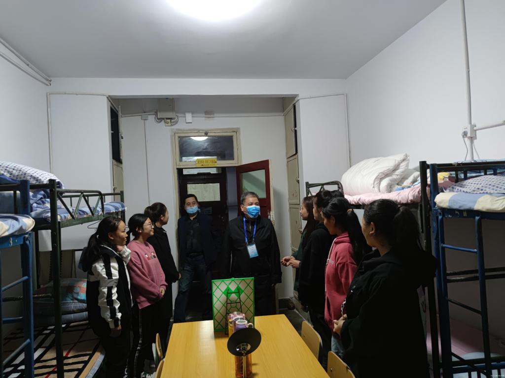 10月13日下午7点,校党委书记杨声、院长安建平及校党委其他班子成员带队深入2020级新生学生公寓开展走访慰问活动,了解新同学的生活和住宿情况。党政办公室、学工处、各二级学院负责人及学生辅导员陪同。