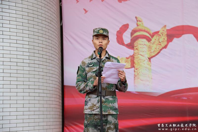 杨声同志宣布2020级军训团正式成立,并向参训部队授旗。参训教官代表和学生代表分别做了发言。