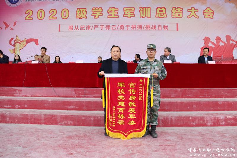 军训汇报展演结束后,承训部队向学校交回了军训团团旗,杨声书记代表学校向承担军训任务的部队赠送了锦旗,表达了对承训教官衷心的感谢和诚挚的敬意。