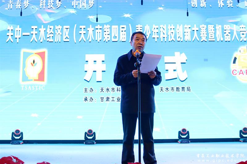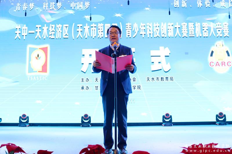 11月12日,关中-天水经济区(天水市第四届)青少年科技创新大赛暨机器人竞赛活动在我校隆重开幕,省科协党组书记、第一副主席陈炳东宣布大赛开幕。天水市委常委、副市长景丹,甘肃工业职业技术学院院长安建平,省科协办公室主任杨雪林,省科技馆书记张兴中,甘肃工业职业技术学院纪委书记潘文生,宝鸡市科协学会部部长张鸿等领导出席开幕式。开幕式由市科协党组书记、主席李凤奇主持。