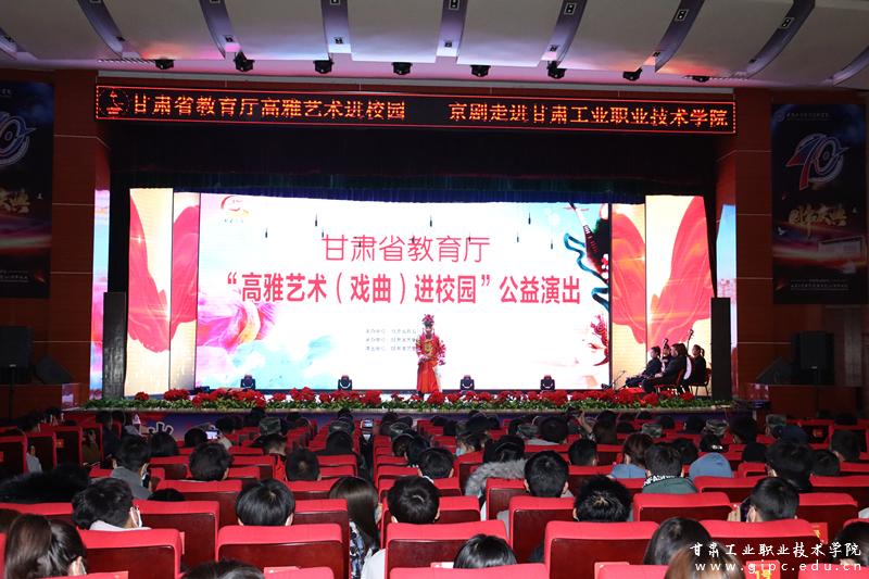 11月22日下午,甘肃敦煌艺术团演出的国粹经典京剧折子戏——高雅艺术进校园活动走进甘肃工业职业技术学院。该活动在学校大学生活动中心成功举行,校党委书记杨声出席活动,700余名师生代表观看了演出,同时演出通过学校抖音平台进行了现场直播。