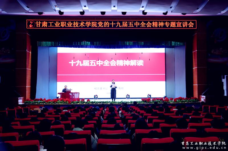 11月30日,甘肃工业职业技术学院党的十九届五中全会精神专题宣讲会在大学生活动中心举行。学校党委书记、宣讲团成员杨声作学习贯彻党的十九届五中全会精神解读。宣传统战部、马克思主义学院、校团委、电信学院、旅游学院全体教师,校院两级团学干部、学生入党积极分子和学生代表聆听了宣讲。