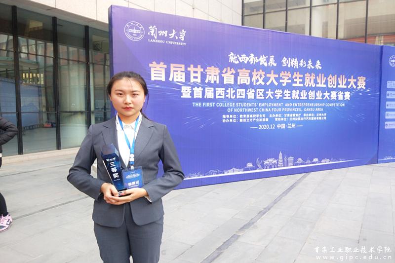 12月6日-8日,首届甘肃省高校大学生就业创业大赛暨首届西北四省区大学生就业创业大赛决赛在兰州大学举行。经过两天的角逐,最终我校王帮荣同学和腾建辉创业团队分别获高职职业生涯规划组和创业实践组一等奖,韩娜和骆琦同学分别获得高职职业生涯规划组和求职实践组三等奖。创业实践组代表队以高职高专组别第一名成绩在大赛闭幕式上进行了汇报交流分享。根据省赛赛制规定,我校一等奖获得者将于今年12月下旬作为甘肃省代表队之一,代表甘肃省参加西北四省区就业创业总决赛。