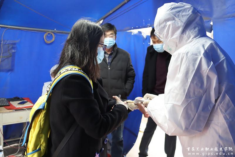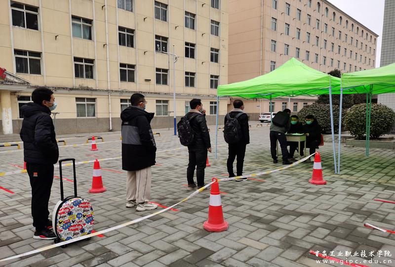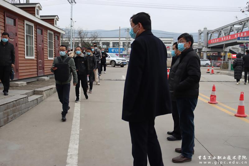 根据《甘肃工业职业技术学院2021年春季学期开学疫情防控应急演练方案》,各部门相关工作人员严格按照规定流程,分工明确、反应迅速、协调有序。主要在学校门口、隔离室、宿舍、食堂等重点区域和重点场所进行了演练,完整模拟了学生返校报到、食堂就餐、日常检测、清洁消杀以及学生体温异常情况应急处置流程,并针对现场演练中存在的问题及时进行讨论和完善。