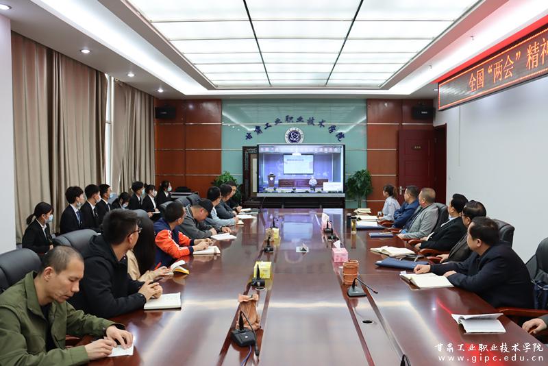 为认真学习贯彻落实全国“两会”精神,根据省教育厅统一安排,3月25日,全国“两会”精神进校园宣讲报告会以陇政钉视频形式在全省直播。我校在图书馆4楼会议室设立分会场,校党委领导班子成员、全体思政课教师、辅导员及学生代表通过视频会议集中学习全国“两会”精神。
