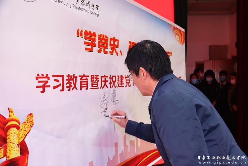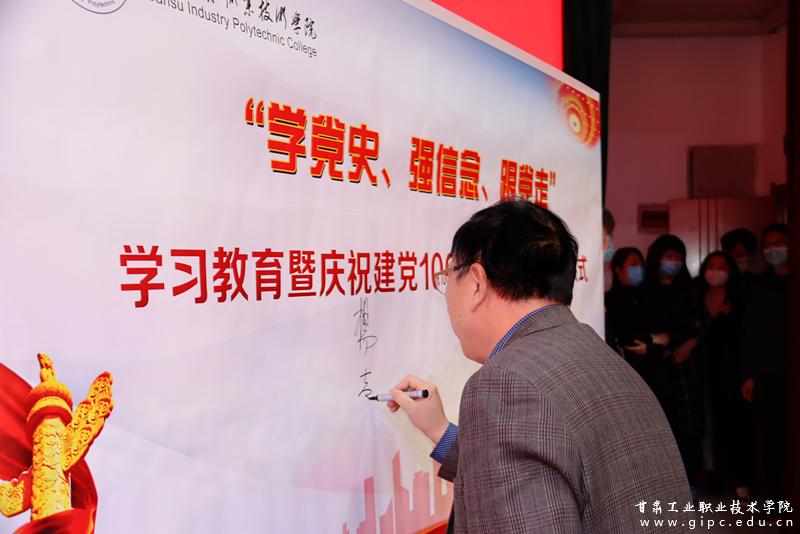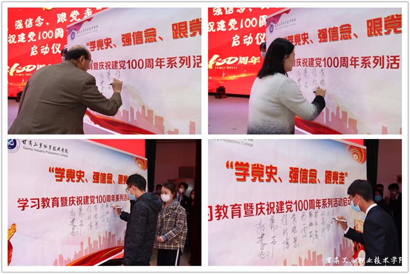 会上,杨声宣布甘肃工业职业技术学院“学党史、强信念、跟党走”学习教育暨庆祝建党百年系列活动正式启动!随后,与会领导及师生代表在“学党史、强信念、跟党走”学习教育暨庆祝建党百年系列活动签名墙上签名留念。