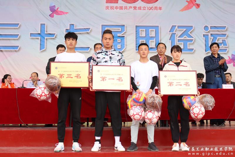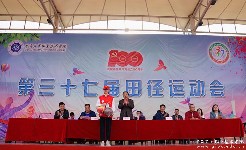 5月21日下午,我校第三十七届田径运动会在全校师生的热情参与和全体裁判员、运动员的共同努力下,顺利完成各项赛事圆满闭幕。闭幕式在田径场隆重举行,校领导班子成员杨声、张选择、杨建国及各二级学院、各部门负责人出席。闭幕式由工会副主席张选择主持。