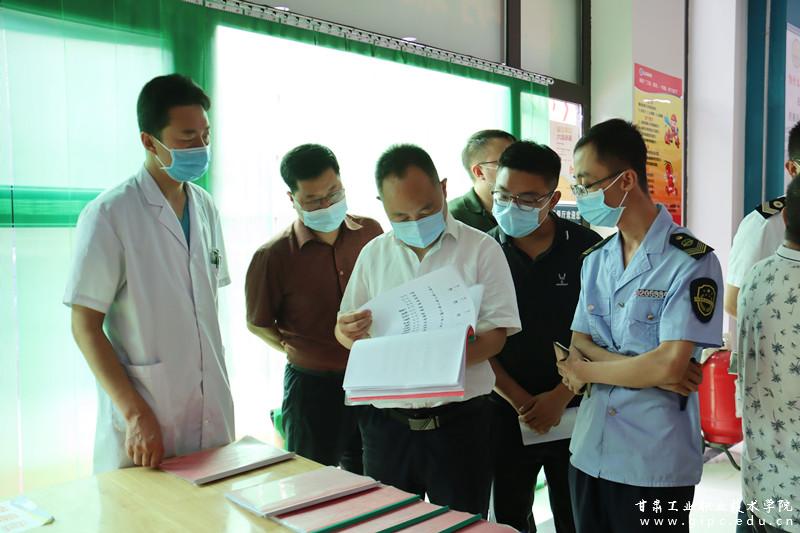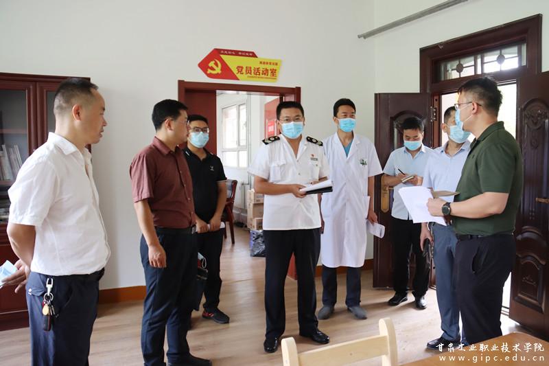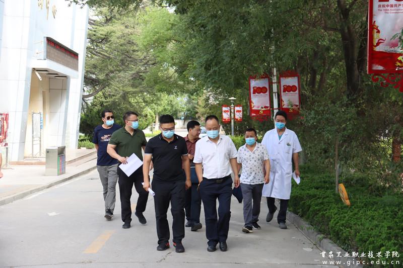 为进一步做好疫情防控常态化工作,充分保障全校师生生命安全和身体健康,8月26日下午,麦积区卫健局、教育局、市场监管局、天水市卫生监督局麦积分局、区疾控中心、花牛镇政府相关领导一行6人莅临我校检查指导开学前疫情防控工作。副院长曹惠清,疫情防控办、学工处、保卫处、国资后勤处、物业公司相关负责人陪同检查。