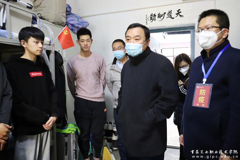 安建平一行先后深入4、5、6、7号学生公寓,随机走访了不同楼层、不同学院、不同班级的学生宿舍。校领导与学生亲切交流,仔细询问了疫情防控专题课程、在线课程学习情况,教师课堂组织情况,宿舍消杀、通风、测温记录等情况,现场检查了各公寓辅导员值班情况,卫生间、浴室等公共区域卫生和消杀情况。