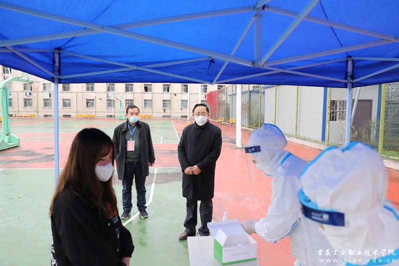 学校领导深入现场、靠前指挥,实地查看采样点区域划分、检测工作流程、服务保障、防控措施落实等情况,要求全校各部门、二级学院要按照属地管理部门的最新防疫要求,以分秒不能等、分毫不能差的行动,从严从紧落实疫情防控各项举措,全力打好疫情防控阻击战。学校各相关部门和二级学院各司其职、通力配合,学生辅导员协助做好信息登记工作,共同为师生安全保驾护航,为快捷高效完成本次核酸检测工作奠定了坚实的基础。