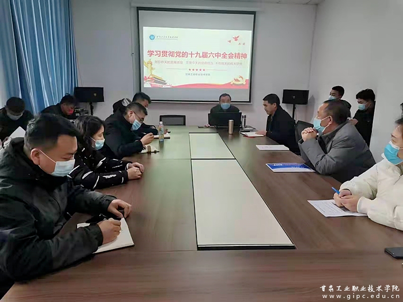 安建平指出,准确把握十九届六中全会精神的精髓要义可简要概括为“123451020”,即一个根本问题、两个确立、三次理论飞跃、四个历史时期和伟大成就、五大历史意义、“十个坚持”的宝贵经验、二十大继往开来踏上新的赶考路。深入学习贯彻十九届六中全会精神,要深刻认识总结党的百年奋斗重大成就和历史经验的重大意义,要深刻认识中国特色社会主义新时代的历史性成就和历史性变革,要深刻认识党的百年奋斗的历史意义和历史经验,深刻认识以史为鉴、开创未来的重要要求。从党的百年奋斗历程中汲取智慧和力量,在学校“双高”建设、打造“技能甘肃”工作中开创新局面,做出新成绩和更大贡献。
