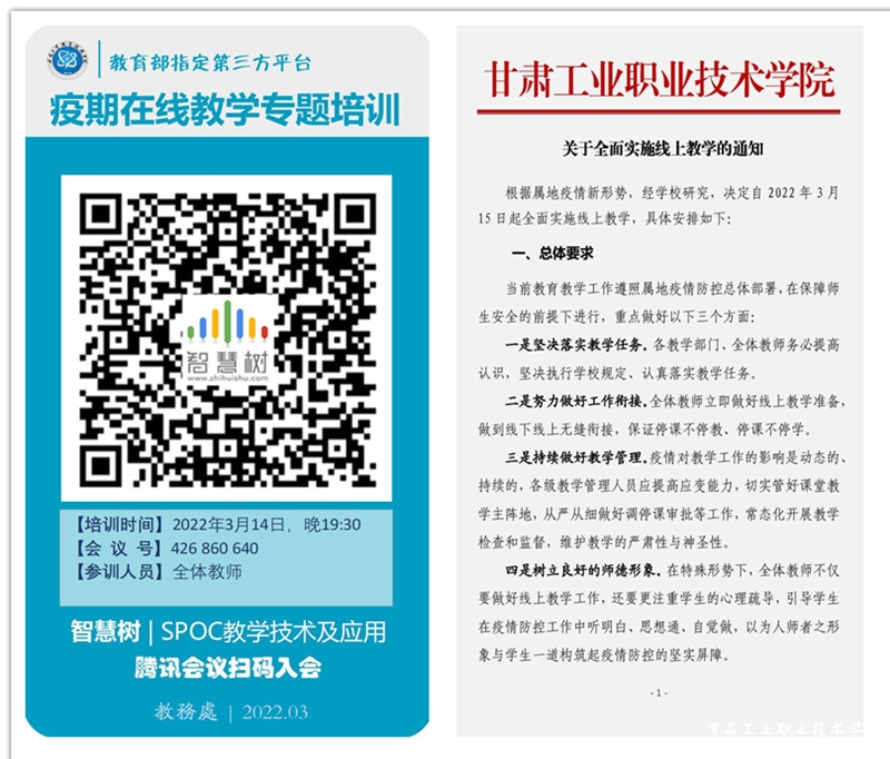 2022年3月14日,为积极响应属地疫情防控政策与总体部署,根据学校疫情防控调度会议要求,学校进行封闭管理,我校教学开始转入线上,至3月15日,全面实施线上教学。为加强线上教学组织与管理,改善教学效果,3月21日起,全体任课教师统一线上教学平台,全部采用“直播”开展线上教学。