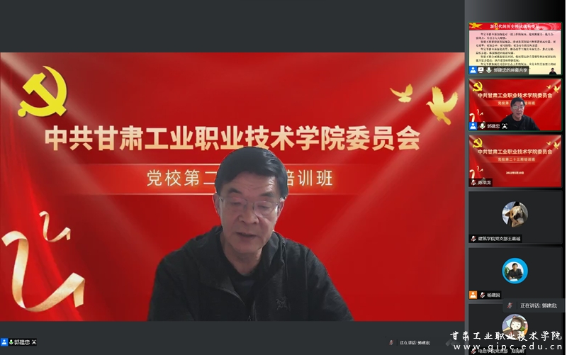 开班仪式以腾讯会议形式在线上举行,郭建忠作了开班讲话。他指出本期发展对象培训班内容优化、重点突出、管理严格、组织严密、形式多样,并对全体学员提出了三点希望:一是进一步加强学习,养成终身学习理念,既向书本学,也向实践学,学专业、学理论,通过学习提高理论素养;二是自觉接受党组织的培养、教育和考察,做到积极主动向党组织汇报思想,正确对待考察;三是要学以致用,争先创优,以自己的实际行动争取早日加入党组织。