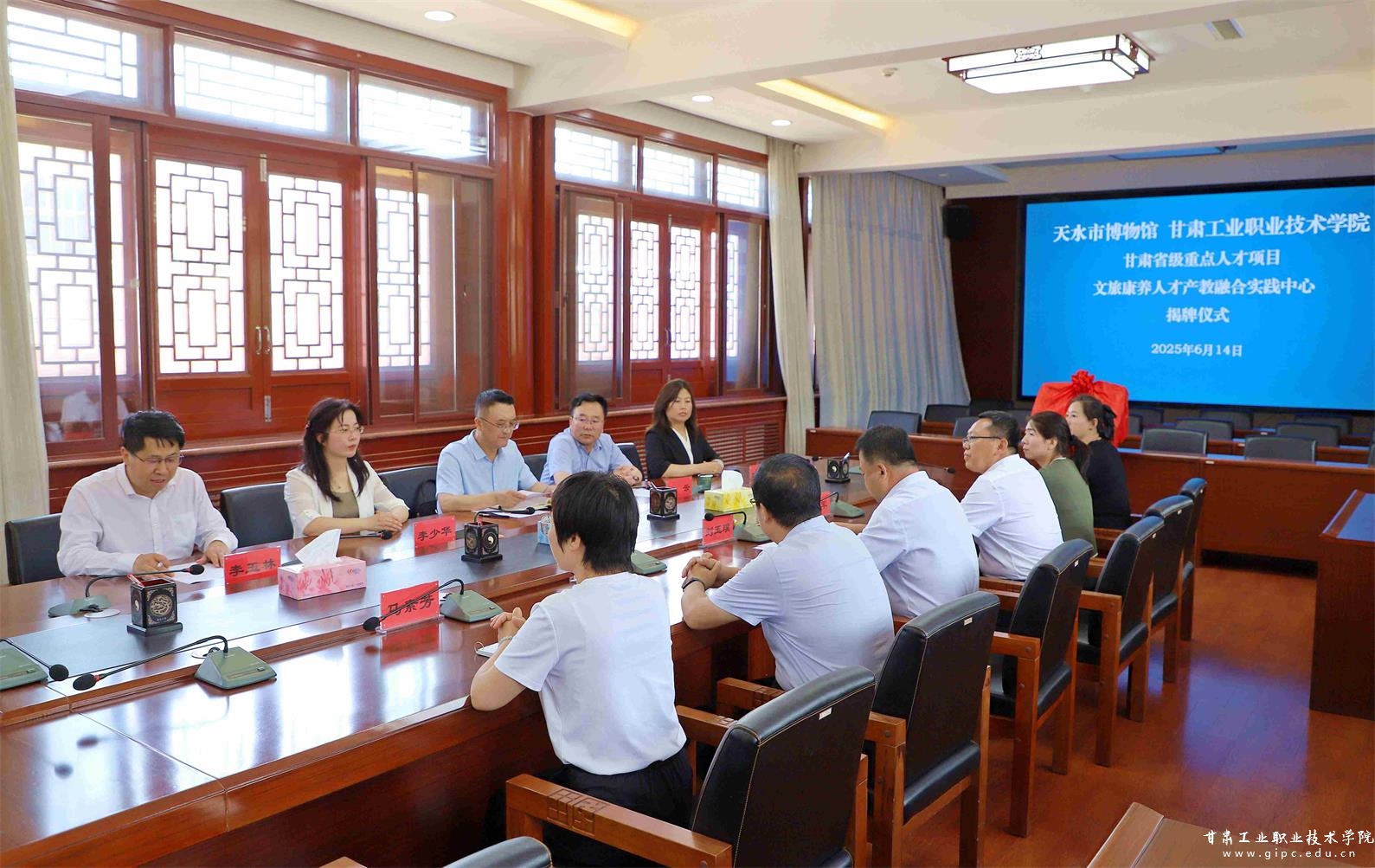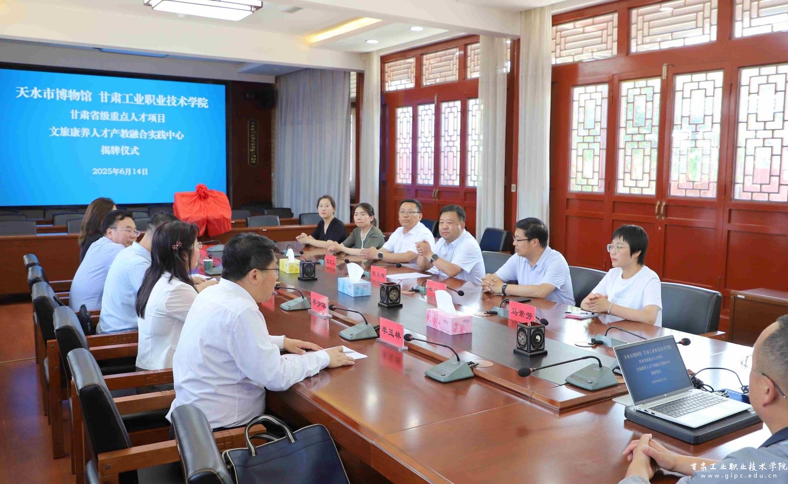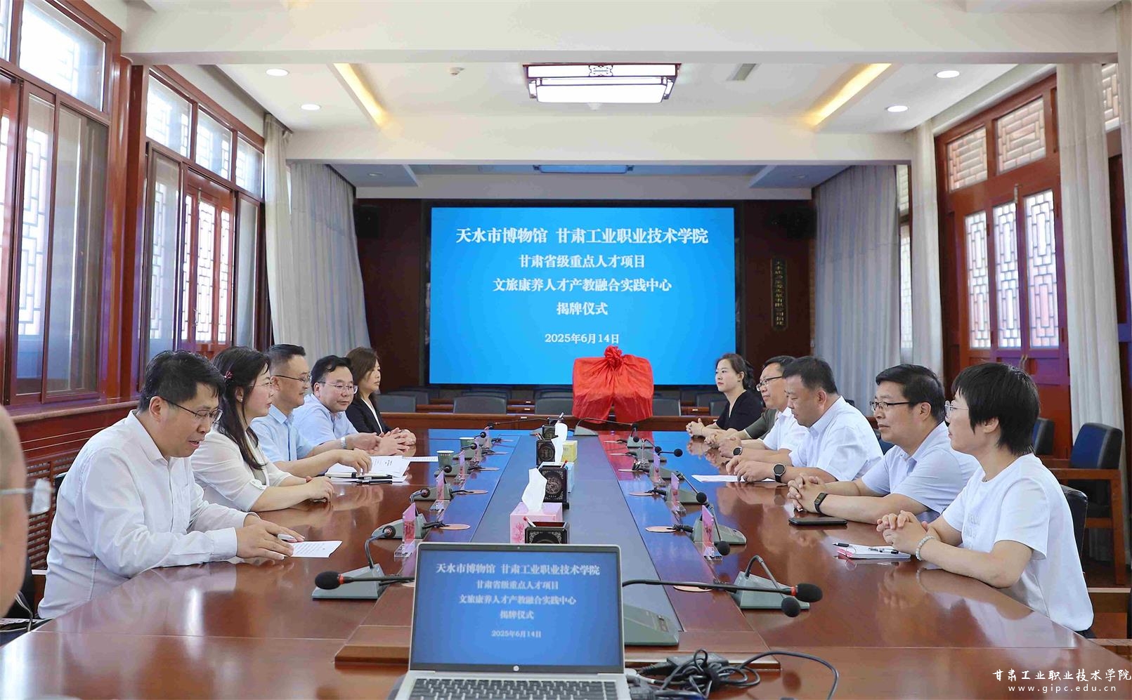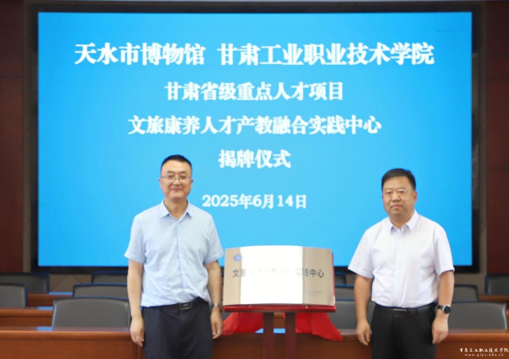 6月14日,我校省级重点人才项目“文旅康养人才产教融合实践中心”揭牌仪式在天水市博物馆伏羲学院畅和轩举行。校党委书记坚葆林、党委副书记文云、天水市博物馆馆长刘玉璞等领导及嘉宾出席活动,仪式由学校旅游学院院长李玉林主持。