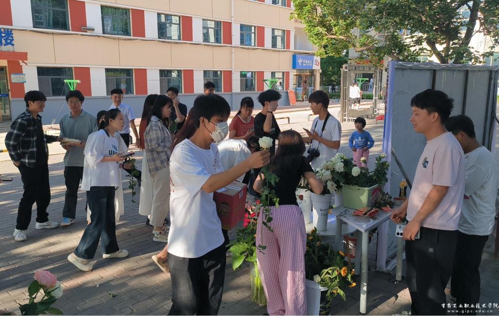 为增强观展的互动性与仪式感,主办方特别准备了鲜花花束,赠予莅临现场的观展师生。鲜花映衬青春面庞,花香与光影艺术交融,为展览增添了温馨雅致的氛围。工作室负责同学在赠花时表示:“本次活动旨在以影像记录美好,更期望通过鲜花传递对生活的热爱与诚挚祝福。”