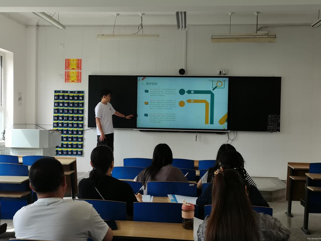 活动中,新教师围绕授课内容,从教材分析、学情把握、目标设定、重难点突破、教学过程及反思等方面进行系统阐述。
