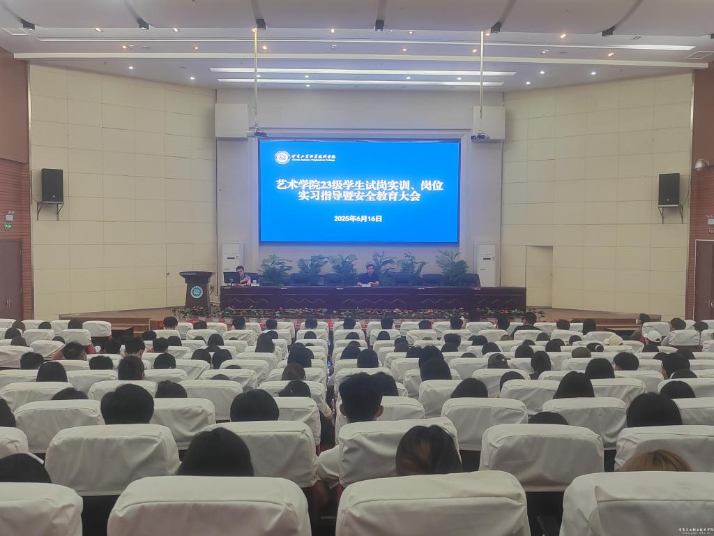 6月16日,艺术学院在图书馆5楼报告厅召开2023级学生试岗实训、岗位实习指导暨安全教育大会。本次大会旨在为2023级学生即将开展的试岗实训和岗位实习提供全面指导,强化安全教育,确保同学们顺利、安全地度过实习阶段。艺术学院相关领导班子成员、各班实习指导教师以及2023级全体学生共同参加。