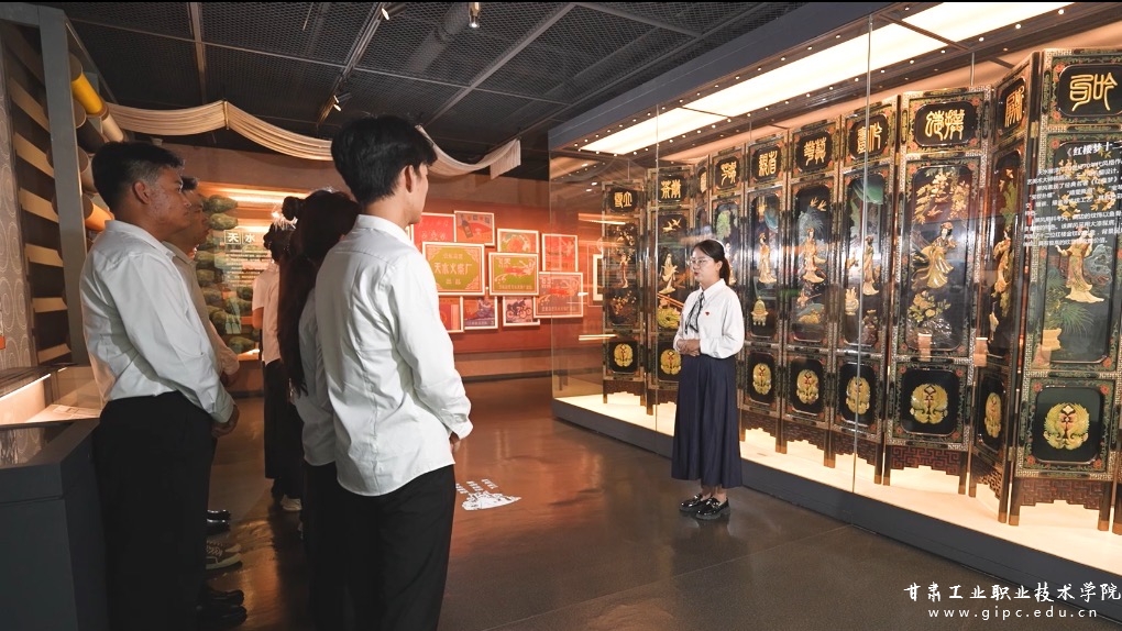 在雕漆工艺展区,教师们以天水雕漆厂20世纪70年代制作的《红楼梦》12金钗雕漆大屏风为切入点,解析作品如何融合螺钿、浮雕、镂空等传统工艺,以及中国工艺美术大师杨荫浓、王一川伉俪的设计巧思。从鱼骨装饰的周边纹饰到青田石金雕的人物造型,再到大漆髹底与描金布景的搭配,教师引导学生品味传统工艺的精湛,深刻理解背后“精益求精、追求卓越”的工匠精神。