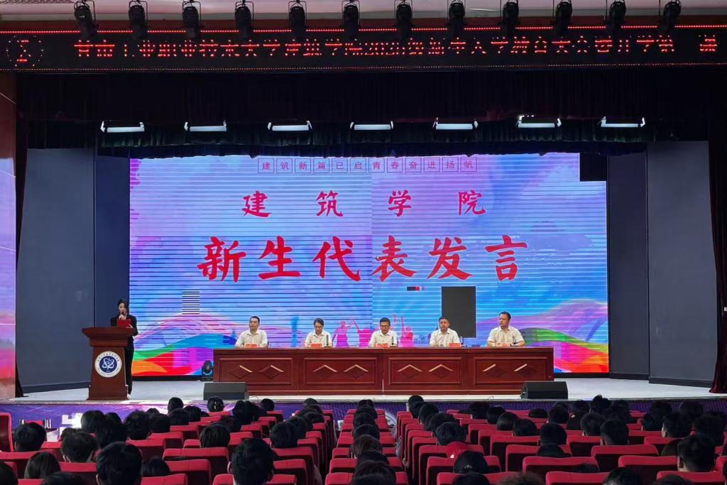 随后,2025级新生代表上台发言,言语间满是对大学生活的憧憬与对建筑专业的热爱。她提到,从收到录取通知书的那一刻起,“建筑”二字便在心中有了特殊的分量,表示将以谦逊的态度学好每一门专业课程,积极参与学科竞赛与实践活动,向老师请教、向学长学习,努力从“建筑萌新”成长为能扛起责任的未来建筑人。同时,她也呼吁全体新生并肩同行,在相互鼓励中克服学习难题,在共同探索中感受建筑学科的魅力,不辜负学院的培养与家人的期待。