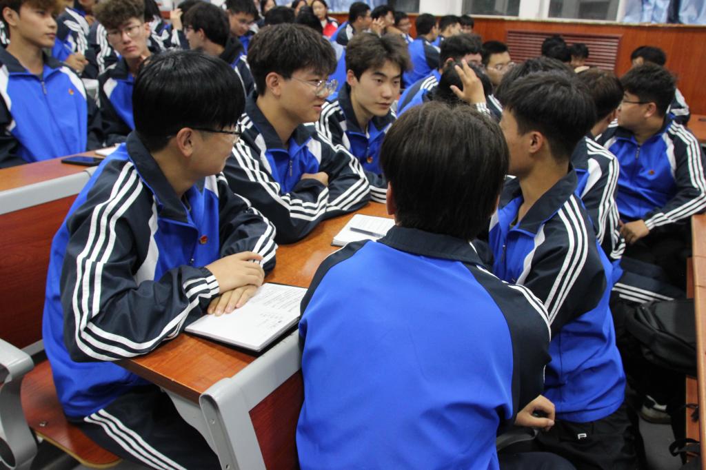 活动伊始,各支部严肃认真地开展了“第一议题”学习,深入领会习近平总书记在纪念中国人民抗日战争暨世界反法西斯战争胜利80周年大会上的重要讲话精神。通过对历史的深情回望,同学们深刻感悟到和平的来之不易与民族的伟大复兴,红色基因的种子悄然播撒心田。紧接着,团课紧密结合2025年国家网络安全宣传周与“全民国防教育月”主题,顺势展开。在网络安全环节,通过学习法规案例、剖析诈骗手段、探讨文明上网,有效提升了新生们在虚拟世界的辨别能力和防护技能,为构建清朗网络空间贡献青春力量。国防教育则通过集中观看2025年“全民国防教育日”特别节目《国防公开课》,学习英模事迹、交流研讨等形式,生动展现了新时代国家安全形势与军民融合成就,激发了同学们关心国防、热爱国防、建设国防、保卫国防的思想认同和行动自觉。