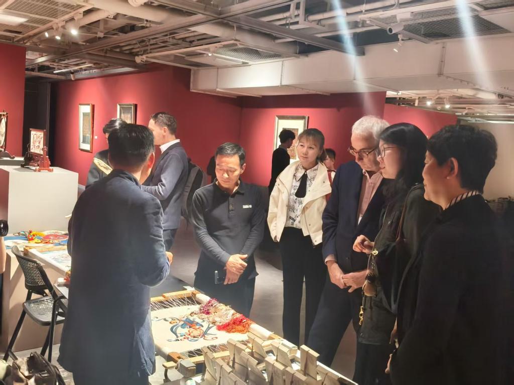 会上,旅游学院非遗大师刘云帆以“非遗活化赋能职教出海”为题作主题发言,系统分享了学院将陇绣等非遗技艺转化为职教国际化特色资源的创新实践。其展示的精湛技艺与蕴含的深厚丝路文化,获得了英国驻华大使馆贸易使节等中外嘉宾的高度评价。