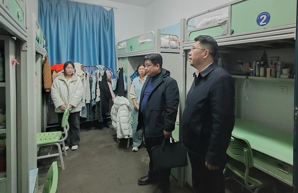 随后,学院领导走进晚自习教室,实地察看学生学习状态,并向值班教师了解管理细节。