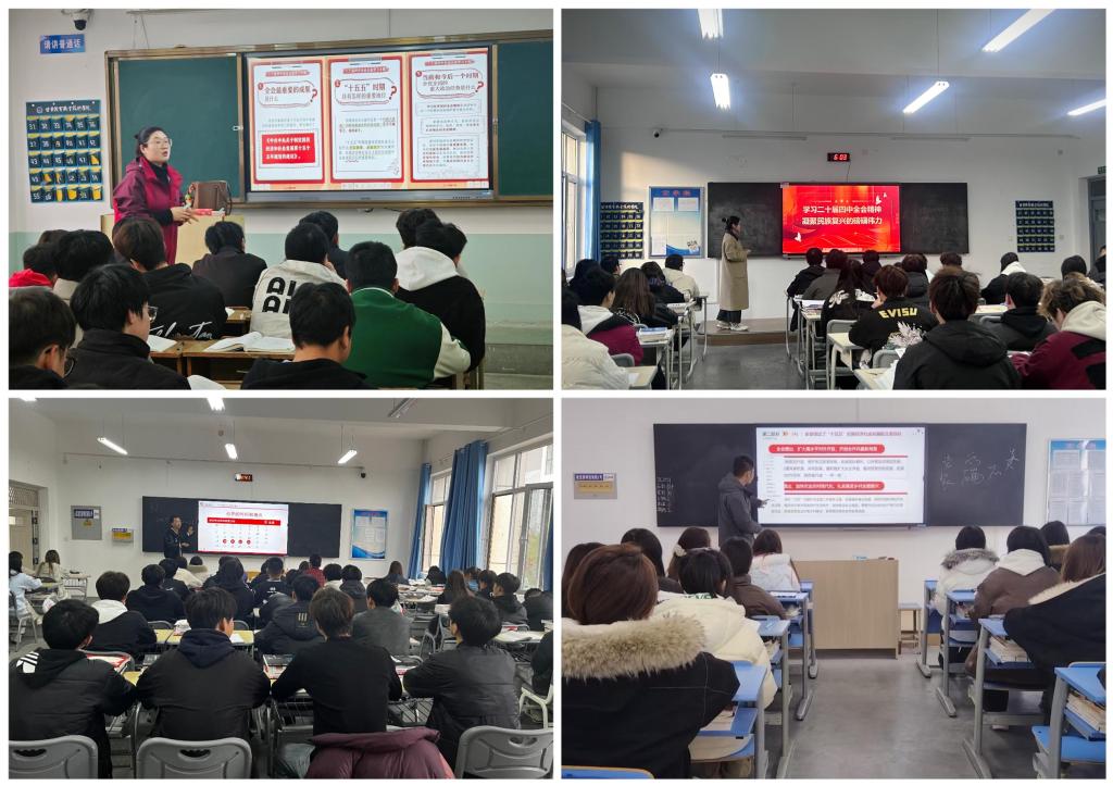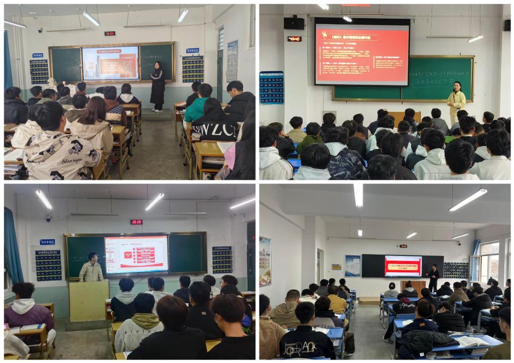 在课堂,全体思政课教师巧妙地将全会精神融入教学过程中,一是将全会核心要义与课程知识点精准对接,做到理论讲解有深度、有温度;二是创新教学方法,运用案例教学等,将全会部署的战略任务转化为鲜活教学素材;三是强化实践赋能,鼓励学生围绕全会精神开展调研实践,实现“以学促行、以行践知”;四是将价值引领贯穿教学全过程,回应学生思想动态,引导青年学生把个人理想融入国家发展大局,用奋斗为青春写下无愧于时代的注脚。