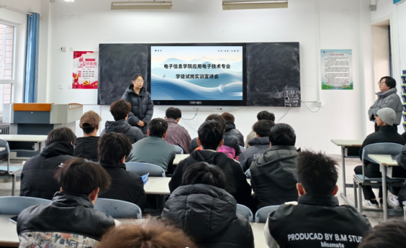 12月23日,电子信息学院举办应用电子技术专业2024级学生学徒试岗实训专项宣讲会。应用电子专业24级全体学生参加。
